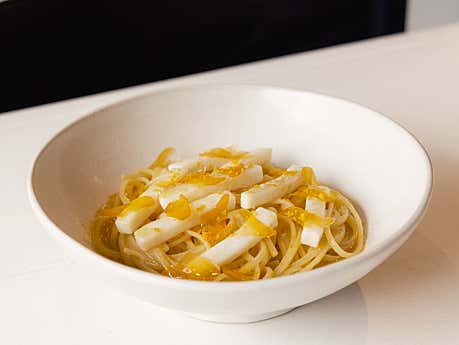 Dinner service skews couple-heavy. The dim lighting and open kitchen give it a date-night energy that's not accidental. If you're coming with a group of four or more, it works fine — just book ahead because the space fills up quickly and they're not casual about walk-ins during peak hours.