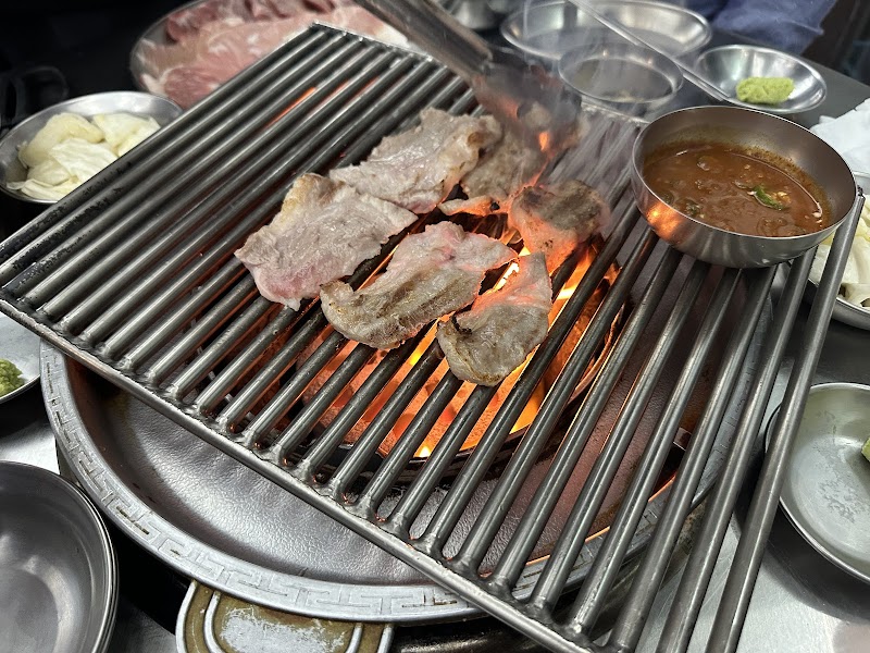 The grill is tableside, staff will usually manage it for you, and the cuts come out in a rhythm. Eat them wrapped in lettuce with a smear of fermented soybean paste (doenjang) and a sliver of raw garlic. Don't overthink it. That combination has been working for decades.